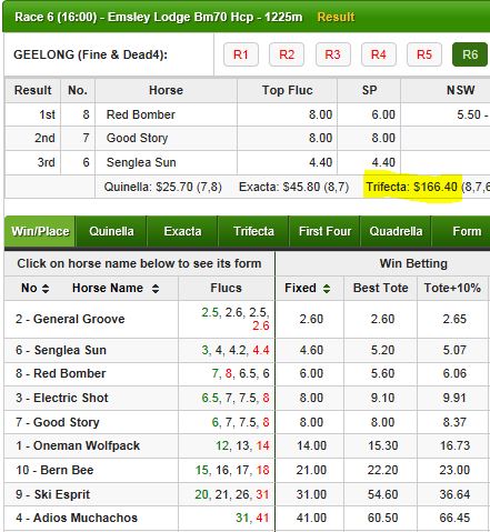 What do you do on days like that? If I was a Backer, I'd be looking at the exotics, boxing those clusters for a trifecta. As a Layer, Laying the 2nd group of tailenders. From the screenshot below, this was a pretty common scenario yesterday.