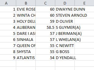 Hang on Shaun, I had VR4 not MR4, so I fixed that but now all I get is Saddelcloth no. Horse name, wght & Jockey....no prices. Must be getting warmer, hey?