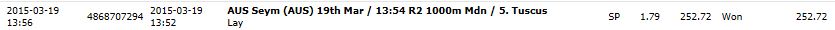 Seymour R2 was a good example of punters failing to take a reality check and ignore the hype. I had two ratings for Tuscus of $26 and $18, and it starts at $1.77.