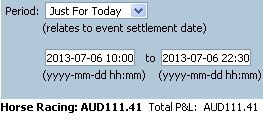 Session 1 (Sat 06/07/2013): Trading Profit Today +111.41 (16 races traded)