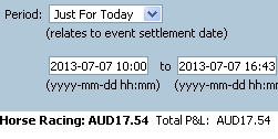 Session 2 (Sun 07/07/2013): Trading Profit Today +17.54 (20 races traded)